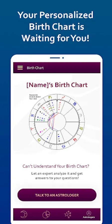 Get your customized natal chart based on the constellation of the stars at the time of your birth