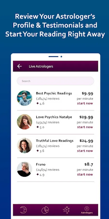 Start chatting with our gifted astrology readers. Get a Free astrology Reading for the first 3 minutes.Open your mind to new possibilities and let your dreams come true. Download the app for free now!