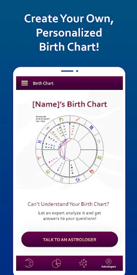 ☆ Get your customized natal chart based on the constellation of the stars at the time of your birth