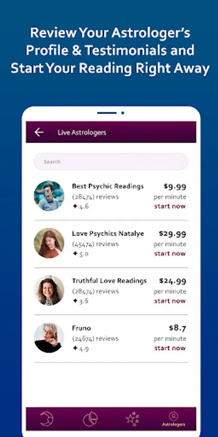 * Detailed psychic and gifted astrologer’s profiles, giving you the power to choose who you want to talk to