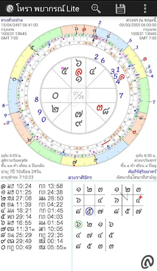 -Calculate the cycle at that moment or the special disc, including Duangtinwatthana (Solar return), Amawasri, Pooonmee