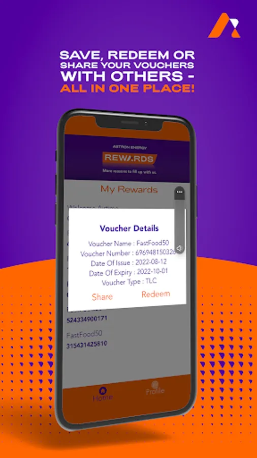 Using the mobile app, you can sign up for Astron Energy Rewards, as well as track and gift your Rewards vouchers, all in one place.