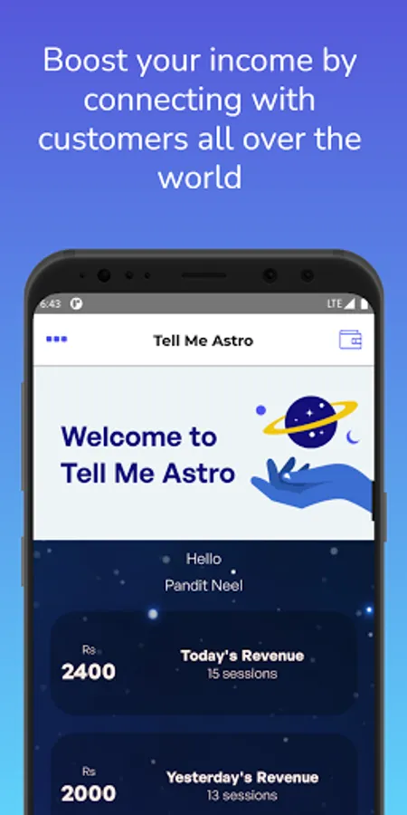 Tell Me Astro-Partner, is an astrology app that enables all astrologers to expand their reach and reach thousands of customers from across the world. Customers all over the world will be able to find your profile in our app and choose to have a consultation with you either over call or chat.