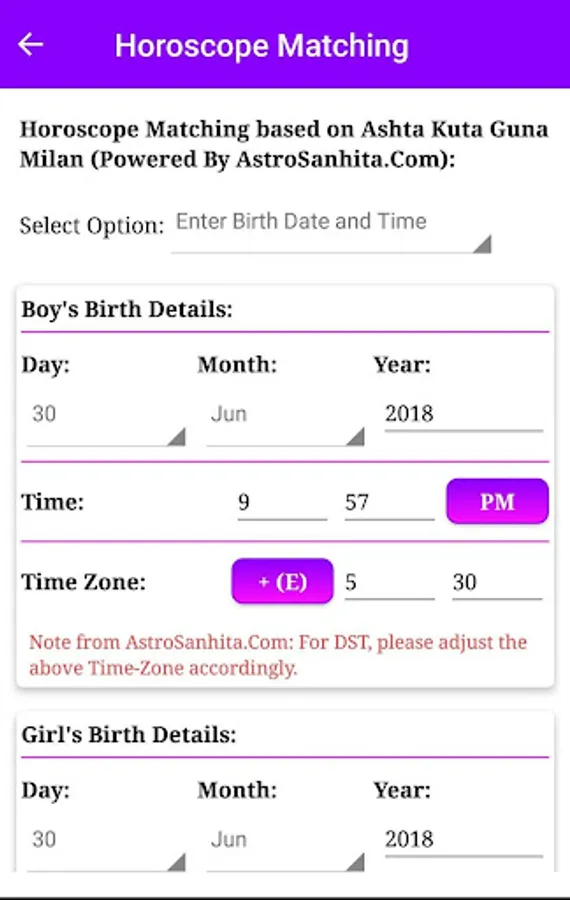 Note: Horoscope App, Kundli Making, Kundli Matching and Panchanga App does not require any Internet connection. It is completely an OFFLINE App