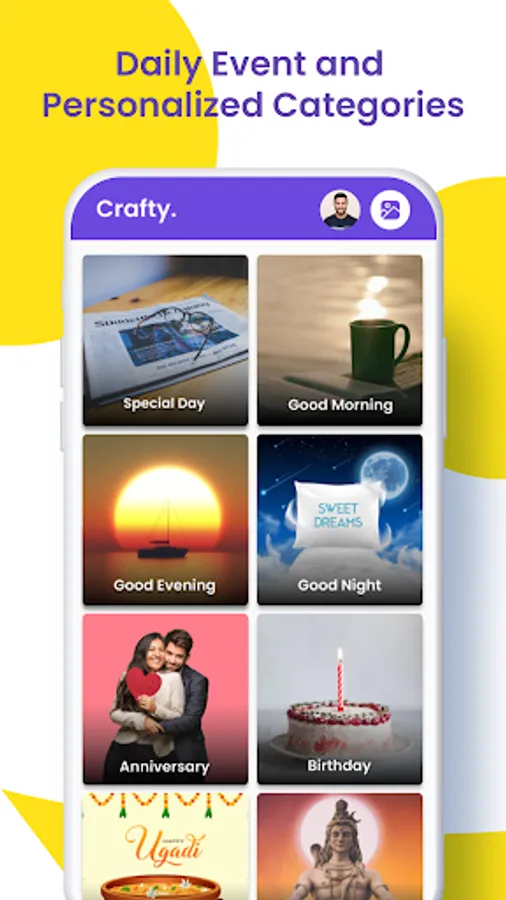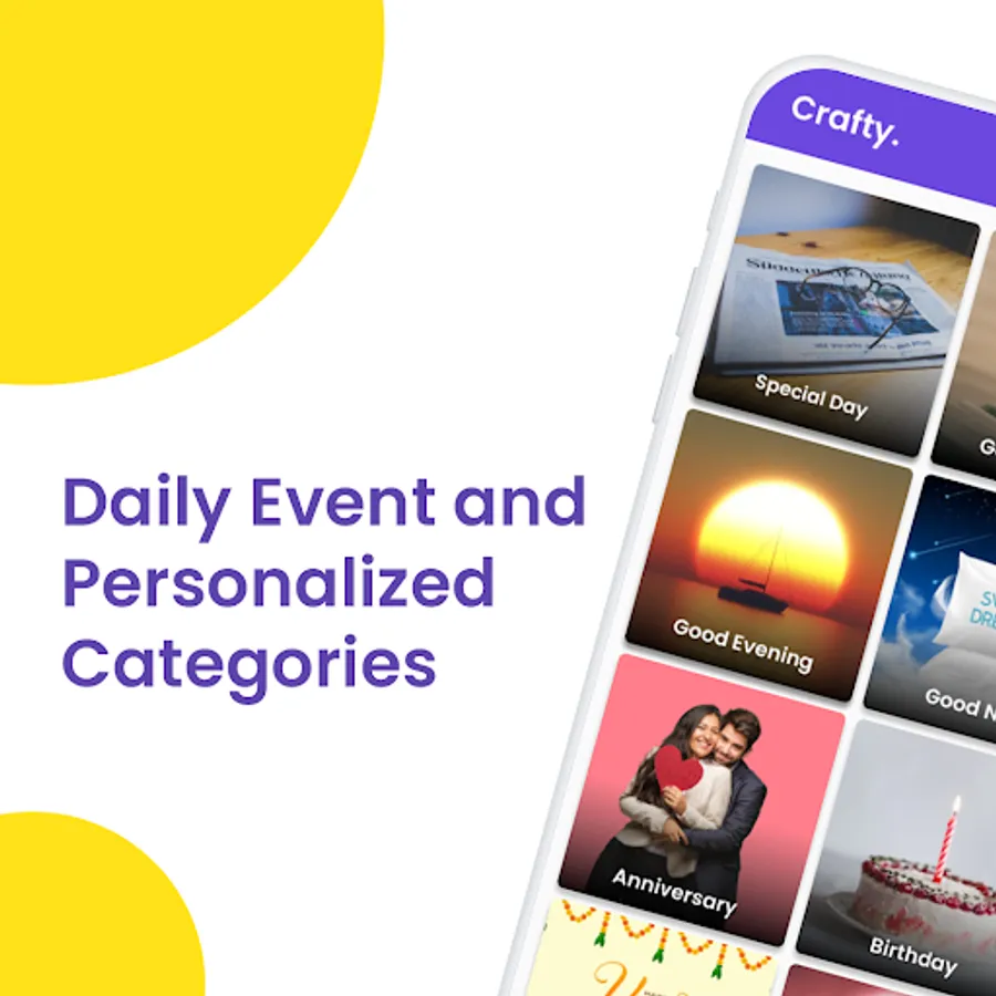 Our app features a user-friendly interface that makes creating and sharing wishes a breeze. Simply select an image and add your personal touch, then choose from a variety of categories including good morning, good evening, good night, anniversary wishes, birthday wishes, and more. Share your wish with friends and family via social media, email, or text. With Crafty, you can make every occasion extra special, whether it's a birthday, anniversary, or just a simple hello.