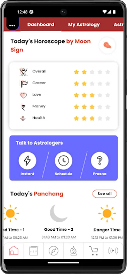 You can also read the predictions for your loved ones’ Moon signs and access the Vedic calendar, marked with important events and lunar phases.