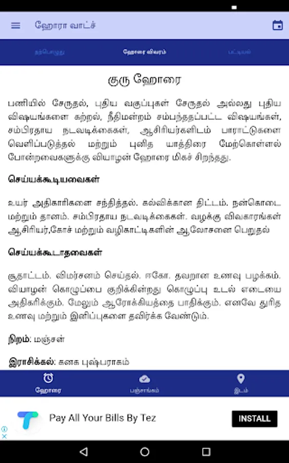 Stay connected with the energies of time, called Time Shaktis in Sanskrit, wherever you go! This application is a great tool to help you get the most out of your day, and plan your days for success. Hora Watch is a time management application based on Vedic Astrology Science. It displays each Hora (hour), ruling planet, and recommended activities for any date and time. This fun and easy way to connect with the planets helps you make the most of every day. With Hora Watch application, we put all you need in the palm of your hand. This is a stand-alone application. While using the application for the first time, a data connection will be needed. Switch on the GPS satellites and the Google's location service to identify the current location. You can also view our other applications by visiting AstroVed.com. Before you go, we also request you to Rate our App and to share it with your friends. Have a nice day!