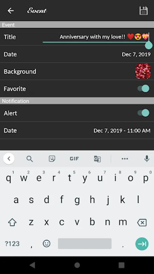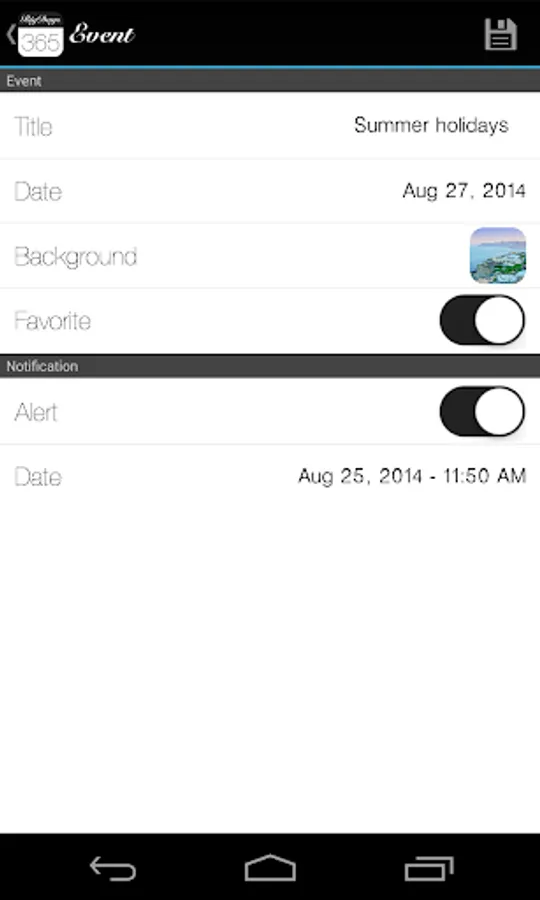 You can also create an alarm for each individual event. You can choose a favorite event to be displayed every time you open the app!