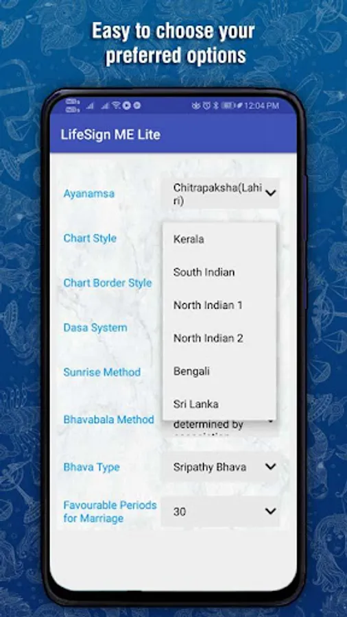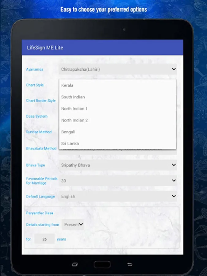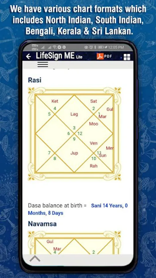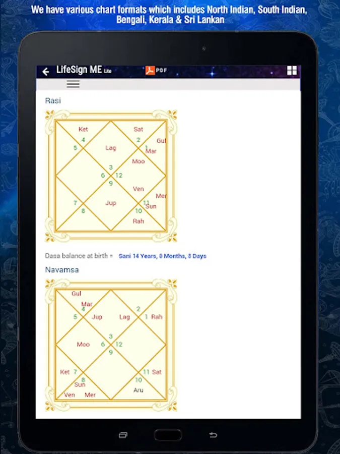 - North Indian, South Indian, Bengali, Kerala & Sri Lankan chart formats.