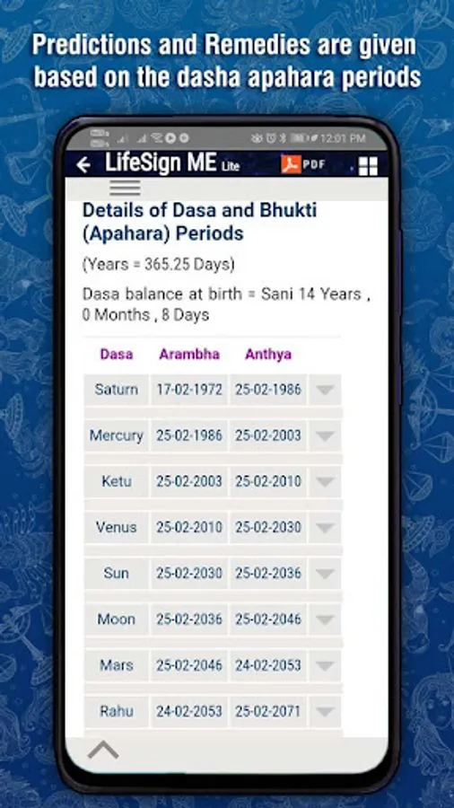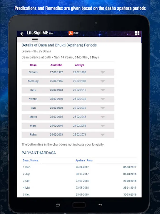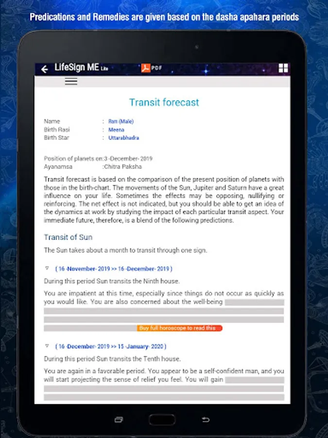 * The Dasha-Apahara periods are listed based on which predictions are made. Remedies for the ill effects of dashas/aphaharas are offered too.
