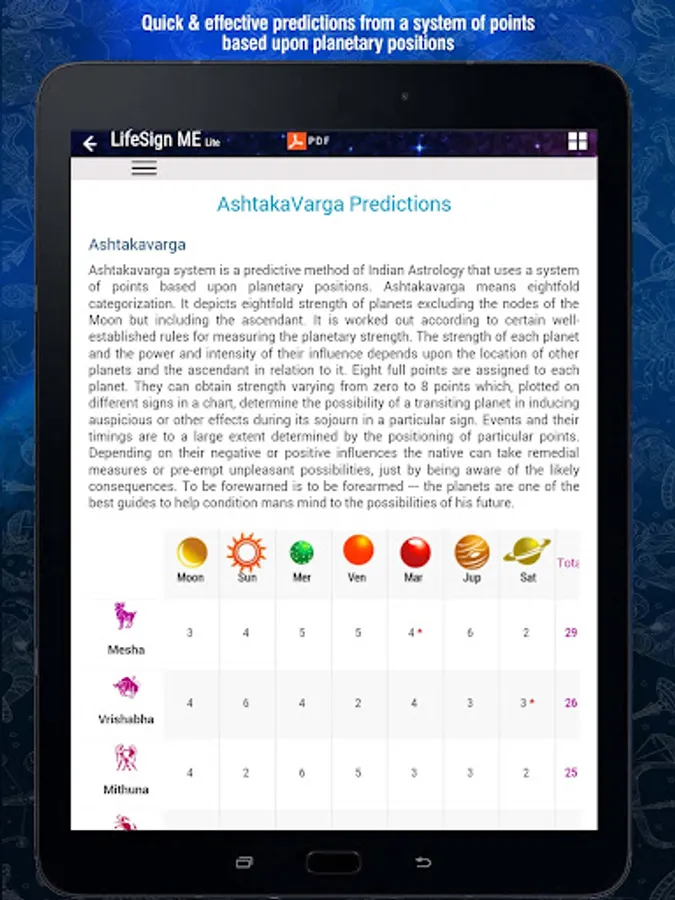 * Ashtakavarga: Charts and predictions based on this system are provided.