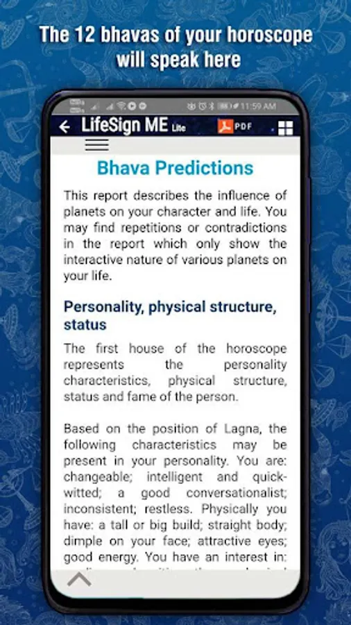 * Bhava Predictions offered by the twelve houses of your chart on various aspects of our lives such as personality, temperament, family, career, wealth, health, marriage, education, etc.