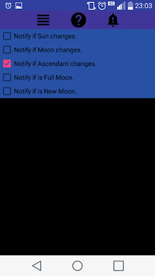 Get notifications when the sign of the Sun, Moon and/or Ascendant changes, or when it is Full Moon or New Moon.