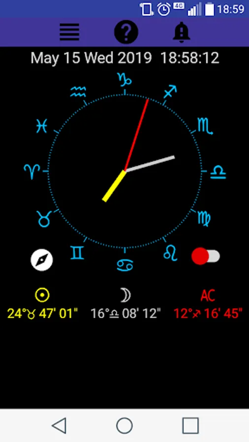 Astrology: Sun, Moon and Ascendant in real time. Astrological clock.