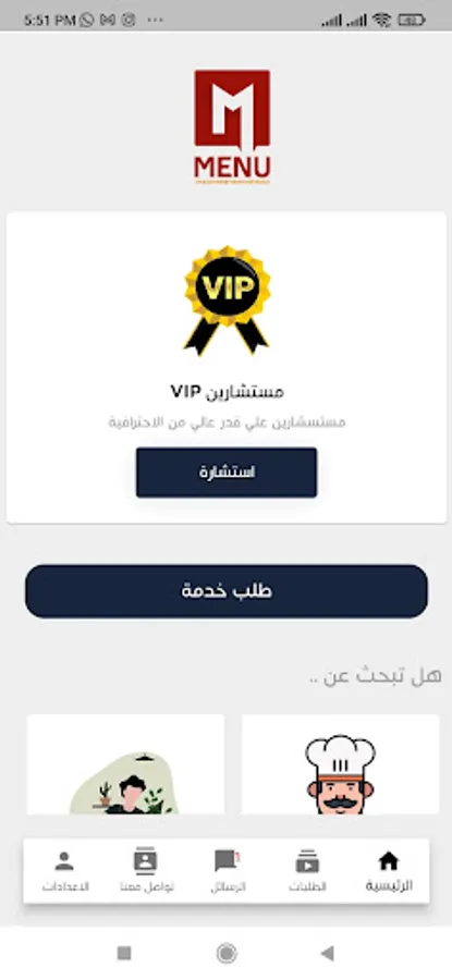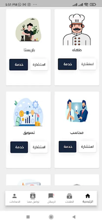 An application for services and consultations, where there are many departments available to help the customer obtain the best service or advice