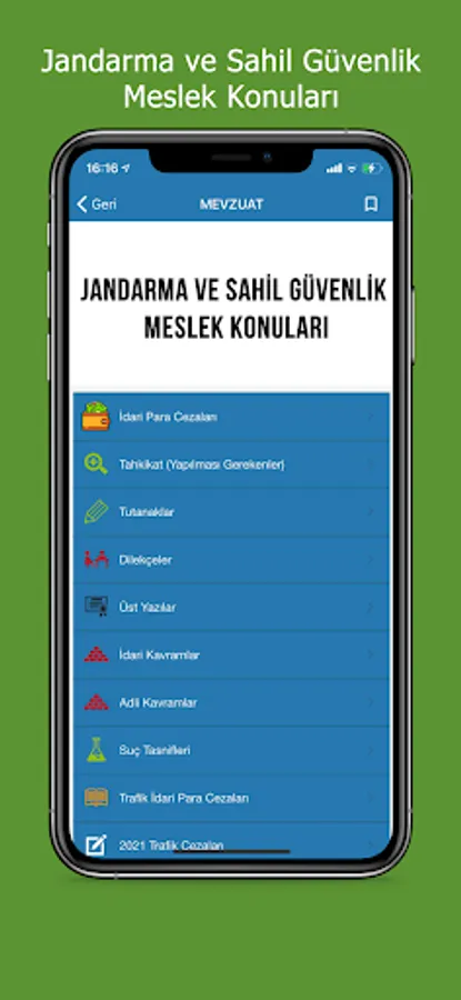 * All of the Current Laws and Regulations and thousands of questions are included in the application. There are questions on every subject. The questions vary according to the number of articles of laws and regulations. The number of questions is constantly being increased.