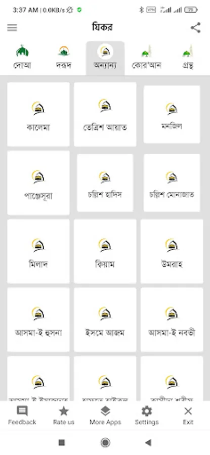 অজিফা এপ্লিকেশনের বিষয়বস্তু একটা তালিকা প্রদর্শনের চেষ্টা করছি :