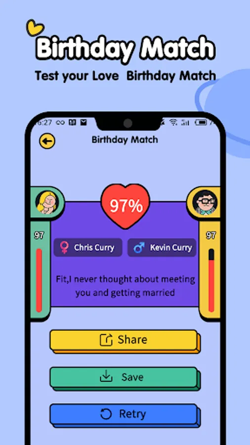 If this application show less compatibility score then don't worry and be cool it's just affection match test game and just for improve yourself and grow up your affection.