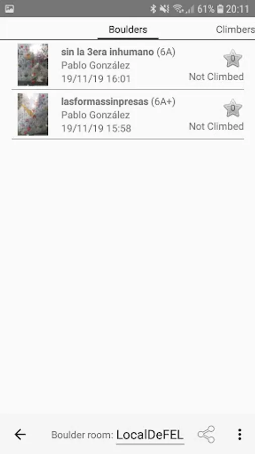 - Share the problems with your climbing partners. The application is organized in rooms and you can upload the problems to the room where you belong.