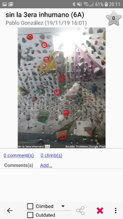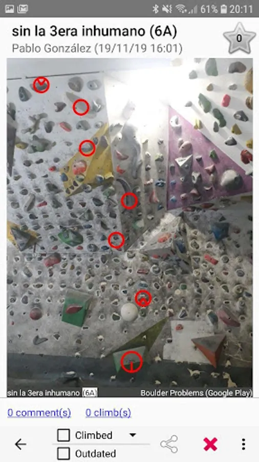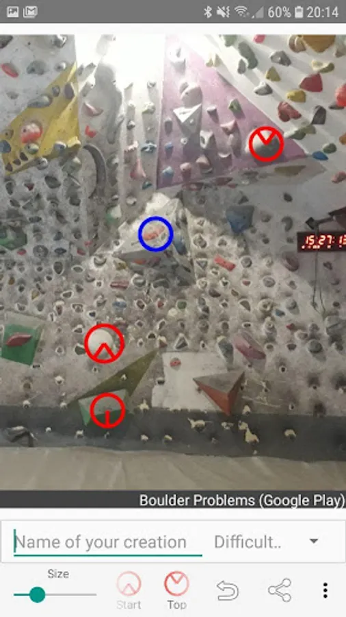 With this application you can take a photo of a wall of your climbing room wall and mark a boulder problem easily.