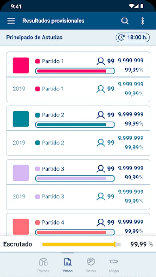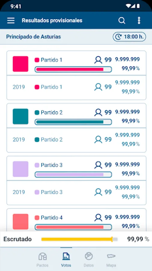 "28M Elections to the General Board of the Principality of Asturias 2023" is the official and free application that the Principality of Asturias makes available to citizens to consult the provisional results of the elections to the General Board of May 28, 2023. It allows consult in real time the provisional results obtained by all the candidacies by geographical area (Community, Circumscriptions, Municipalities)