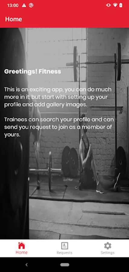 Home: This is the dashboard for the Trainee. Trainers that are connected with a trainee will show up on this dashboard screen together with the assigned workouts.