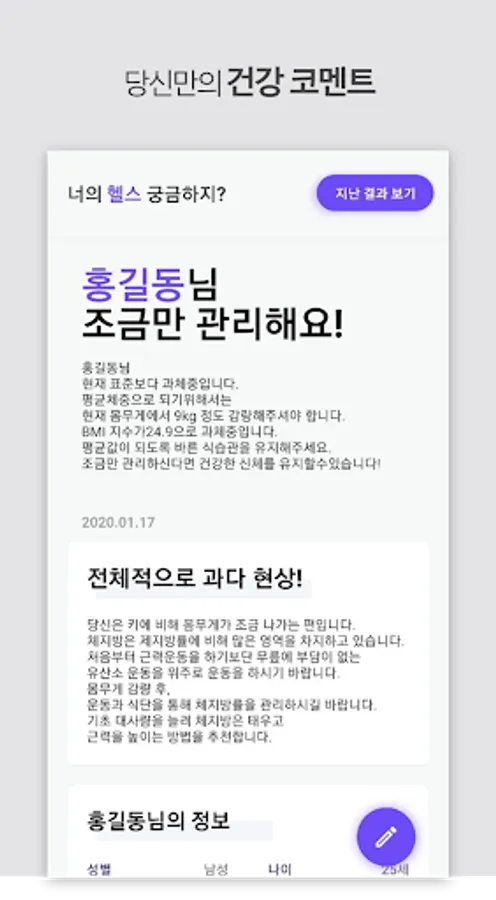 2. 사용자에게 맞는 건강 관리 법과 조언, 충고, 운동 등의 코멘트를 해줍니다.