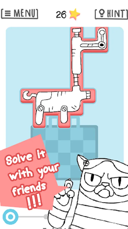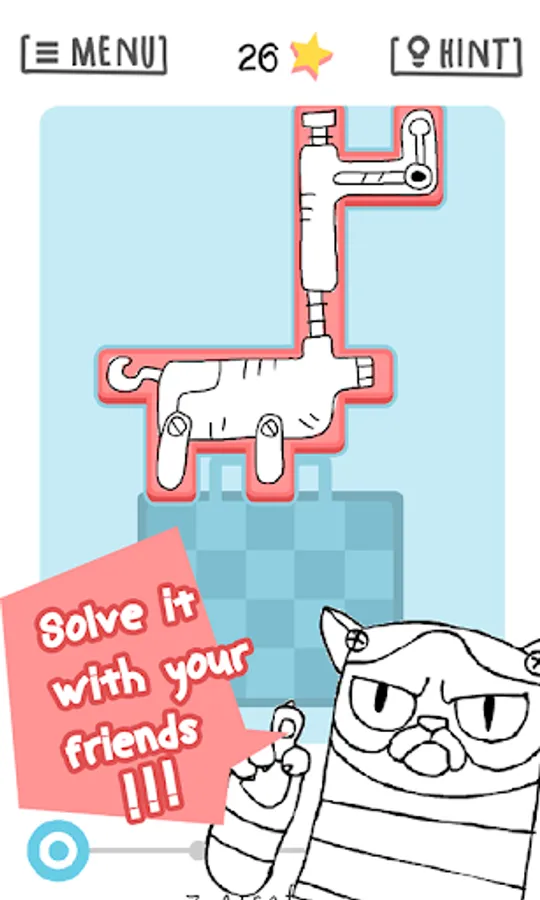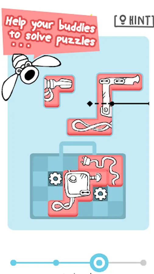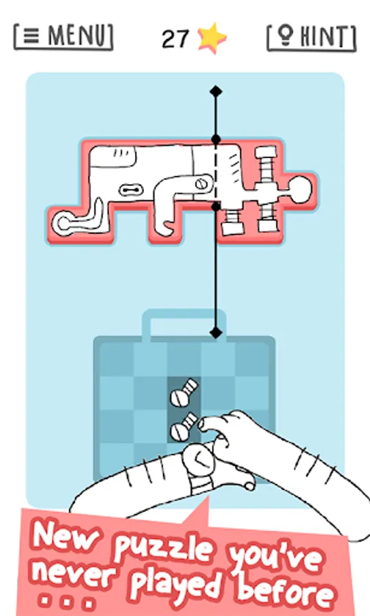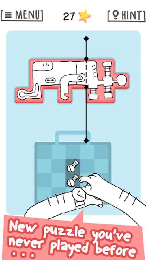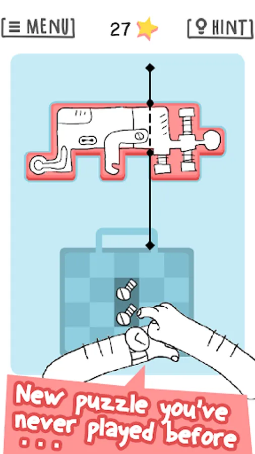 Slide the tiny robot to fit the suitcase. Remember you can only make 3 cuts