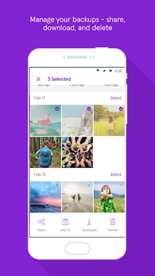 Tap 'Download' to restore backed-up photos and videos to your device.