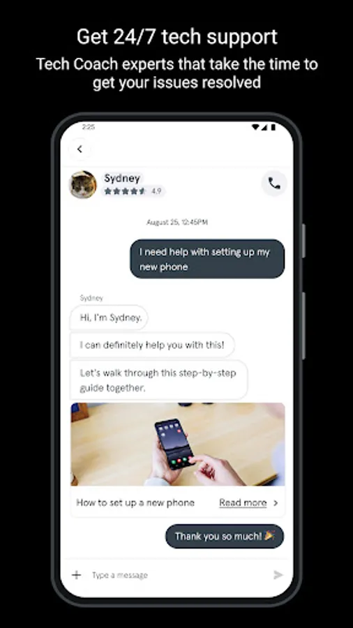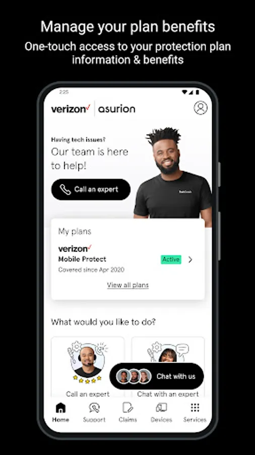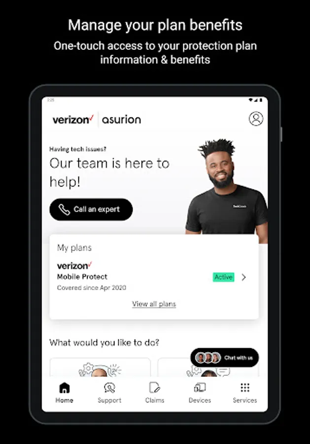 The Tech Coach app provides instant, round-the-clock access to experts ready to solve your tech issues. Plus, access claims management, device setup, benefits, and coverage details.