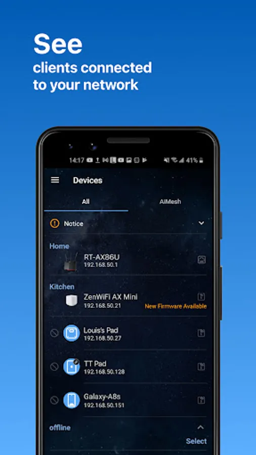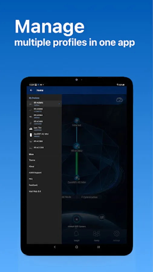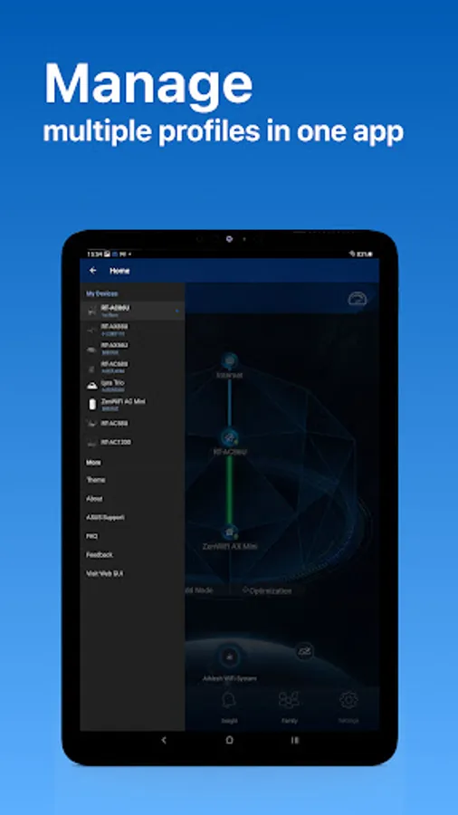 The ASUS Router app unlocks the power to manage your network in just a few taps whenever you want, wherever you go. We are aiming to provide the best WiFi and Internet-surfing experiences you have ever had with these comprehensive features.
