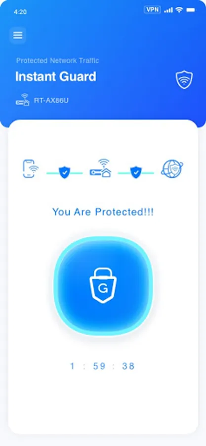 Use the Instant Guard app when you're connecting to a public Wi-Fi. Tap to shield as safe as you are using your network at home - ensuring your privacy and financial credentials protected. With Instant Guard, you can easily access to your ASUS router at home while you are away and keep 100% anonymous while you are browsing the web or chating with Virtual Private Network (VPN) connection. In the future, this feature will allow network managers to share VPN connection permissions to friends or family members.