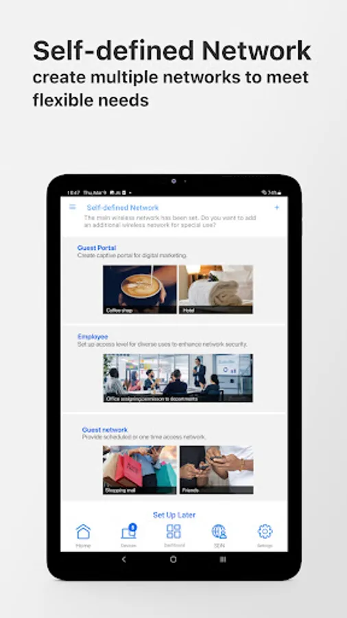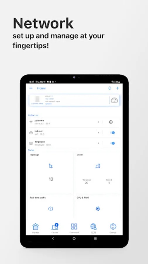 The ExpertWiFi App is a comprehensive network solution for businesses of all sizes. It makes business network easy to set up without an IT team and provides full-function management to a complete product line with the mesh system, router, access point, and switch as your business expands. And control your business network whenever you want, wherever you go.