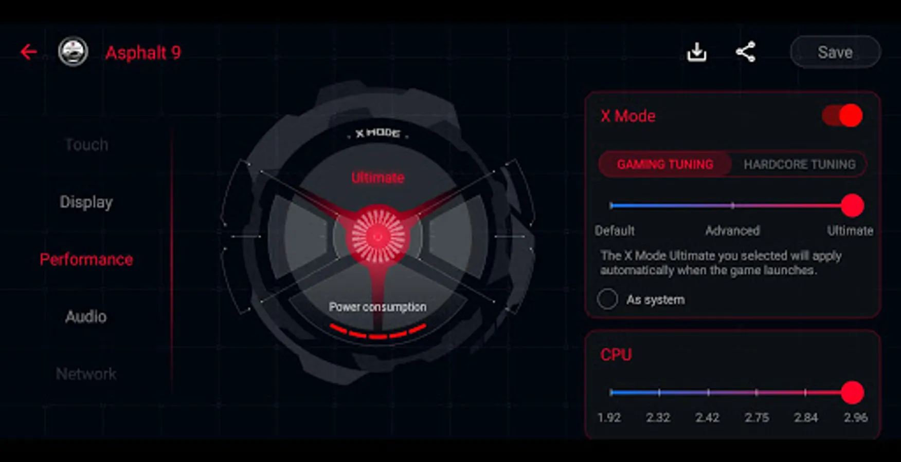 - One-click to improve gaming performance of ROG Phone, buff up your game performance.