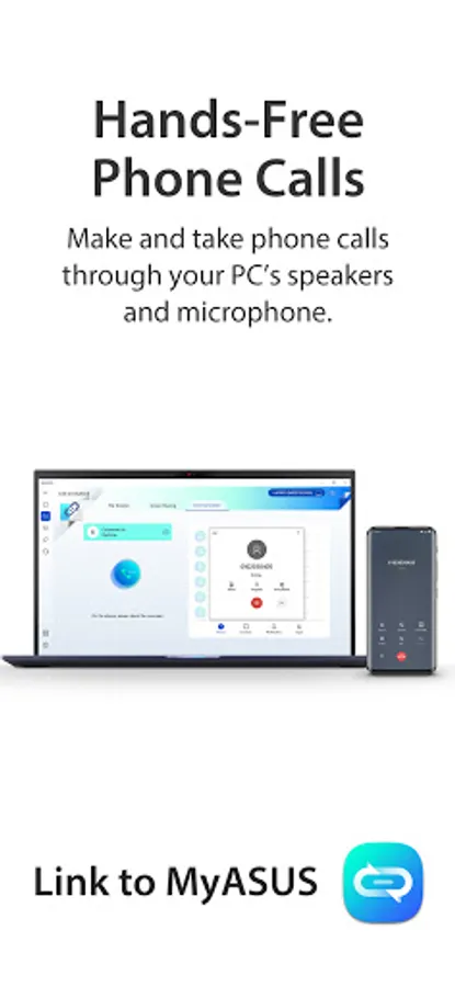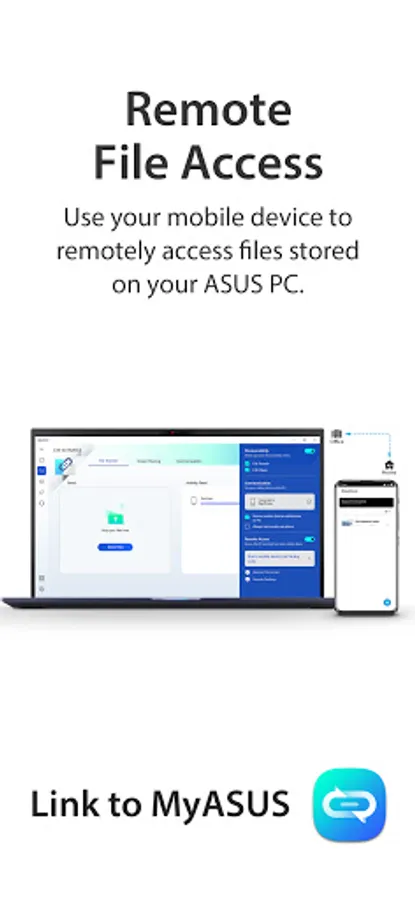 The Link to MyASUS feature is a handy tool that's part of the MyASUS app.* It seamlessly integrates your ASUS PC with your mobile devices, boosting your productivity and allowing easier multitasking. A series of features enables you to transfer files or links quickly and wirelessly between devices, control your phone from your PC, or access local PC files remotely from your phone. Link to MyASUS simplifies your life!