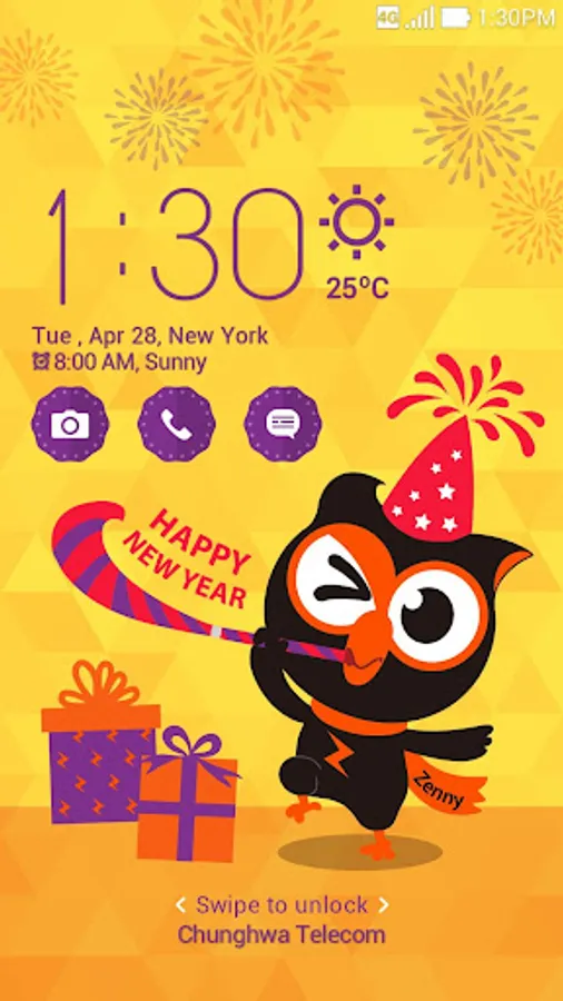 To keep using the Happy New Year Zenny! theme icon pack with different wallpapers, use your Launcher and follow the steps found under Tip.