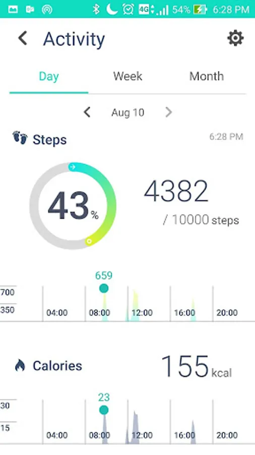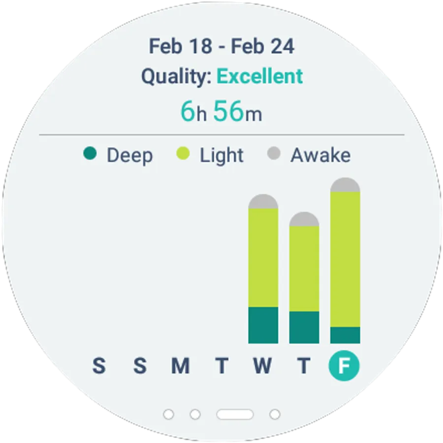 - Sleep status diagram that shows your relative movement during sleep at night in terms of wake-ups, light sleep, and deep sleep.