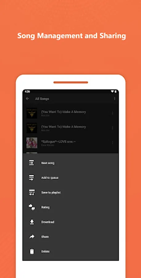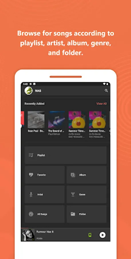 - Browse for songs according to playlist, artist, album, composer, and folder.