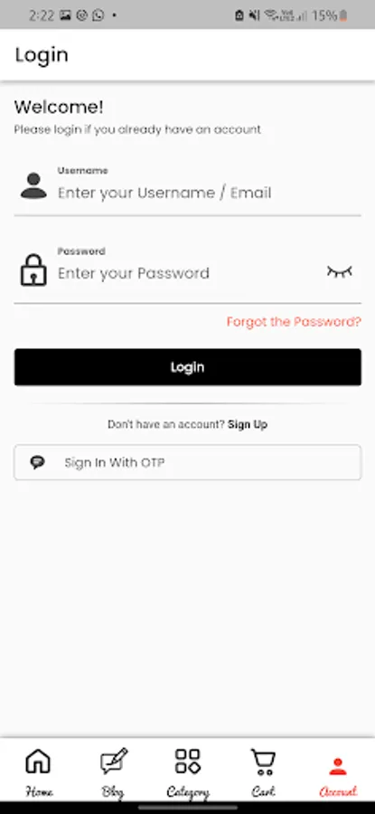 4- Log in with either the phone number or the email and the password that you registered in creating the account