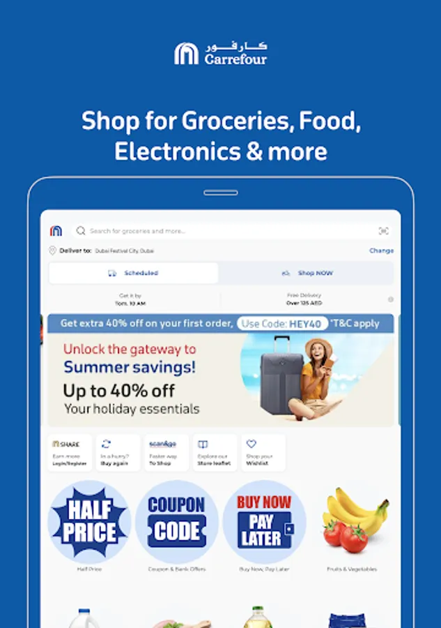 The MAF Carrefour app is your first choice when it comes to shopping for groceries, electronics, household items, appliances, personal care, beauty, and more. Choose from a very large variety of fresh foods from all around the world that are ready to be delivered to your doorstep.