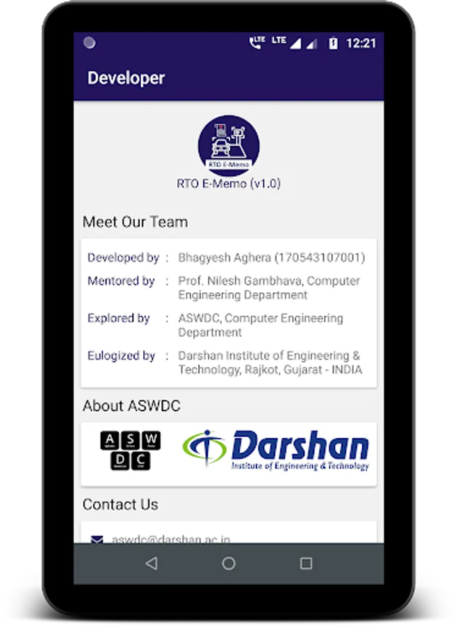 This App is developed at ASWDC by Bhagyesh Aghera (170543107001), a 7th-semester CE Student. ASWDC is Apps, Software, and Website Development Center @ Darshan University, Rajkot run by students & staff of Computer Science and Engineering Department.