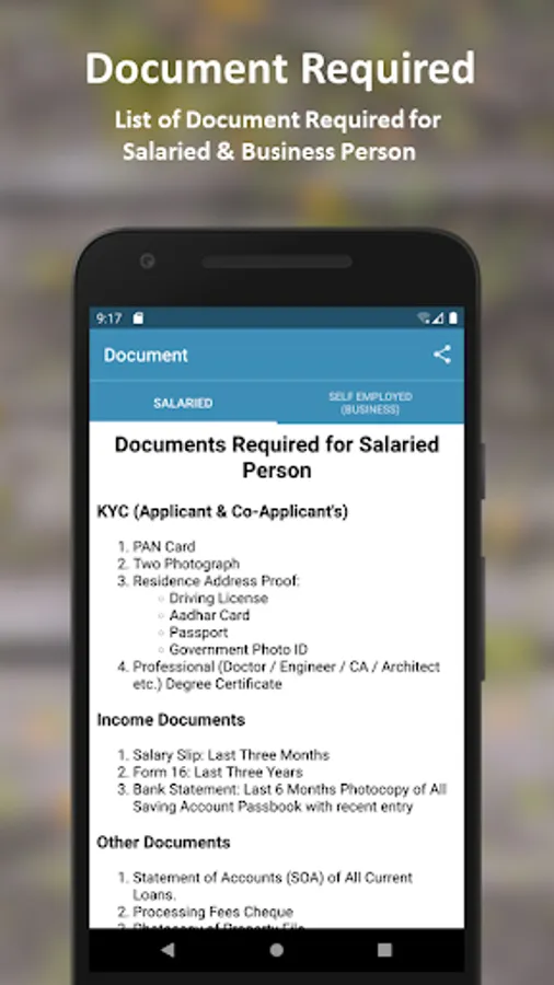» Documents Required: Documents required of Salaried Person or Businessman or Self Employed to avail home loan from Public Sector Banks, Private Sector Banks, Housing Finance Companies (HFC) in India.
