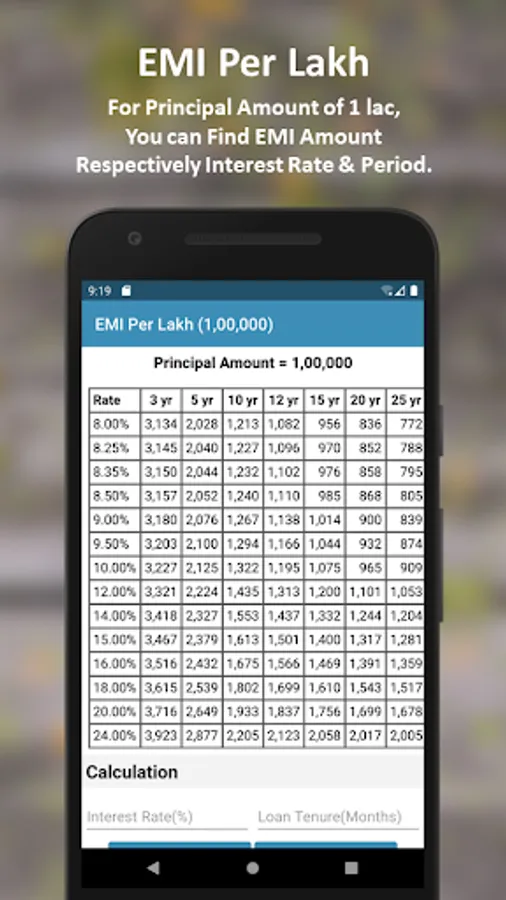 » Calculate EMI: Enter Amount, Interest Rate (%) and Loan Tenure (Years / Months) to calculate EMI.