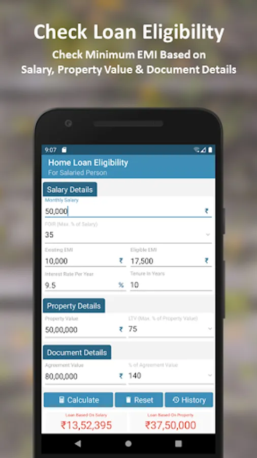 » Check Eligibility: Users from India can check their home loan eligibility based on Income (Salary), Property Document needed and Market Valuation.