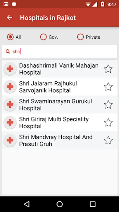 » You can star your favourite hospital to get information related to it later