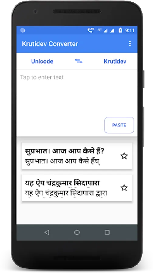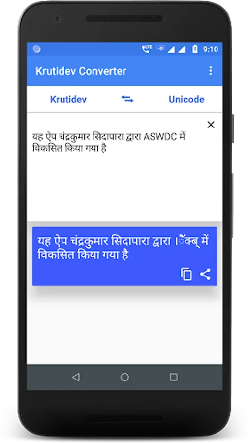 Krutidev to Unicode converter is an app that is very helpful for the professional Hindi typist. You can use the app to enhance your typing skills. You can use the app to do the conversion and use the generated text directly on any of the social media platforms.