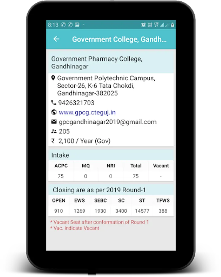 This is not an official app of Admission Committee for Professional Courses, (ACPC) (http://www.jacpcldce.ac.in) or any government organization