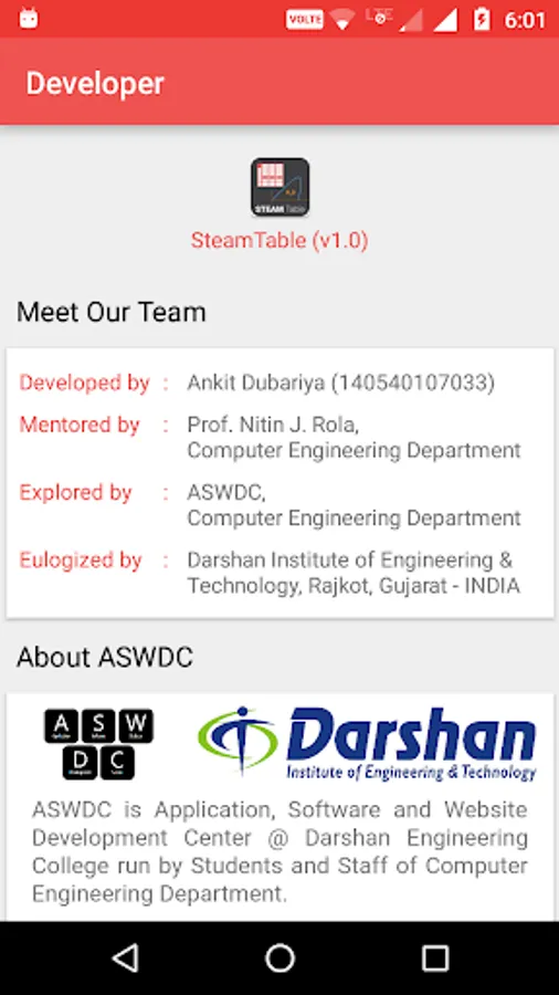 This App is developed at ASWDC by Ankit Dubariya (140540107033), a 6th Sem CE Student. ASWDC is Apps, Software, and Website Development Center @ Darshan University, Rajkot run by students & staff of Computer Science and Engineering Department.
