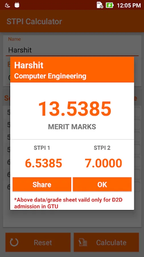 Merit Mark for D2D Admissions of Degree Engineering for GTU Students is based on Semester Theory Performance Index (STPI). STPI is a GPA of Sem-5 & Sem-6 Subjects of only external theory exam (i.e. out of 70 marks). Theory ESE component of GTU result is used to calculate STPI. Marks of mid-semester, internal or practical exam are not counted.