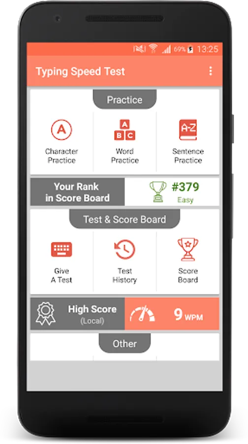 » Score Board - App shows top scorer around the world. Take part in typing test challenge and show your typing speed to all.